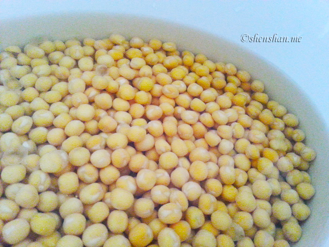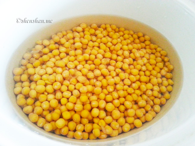 超市里买来干豌豆一包,泡发。
