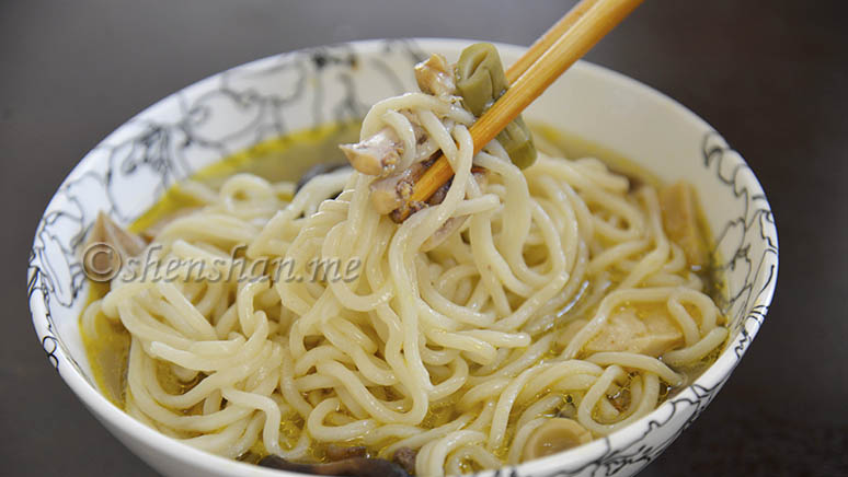 面煮好,盛大半碗汤,老成都的海味面闪亮登场……