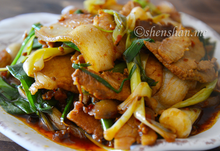 大户人家拥红倚翠的不得不承认正房只有一位,回锅肉的原配也只有蒜苗,但偏房外室之众,却是其他菜肴望尘莫及的,莲花白可以炒回锅肉、洋葱也可以炒回锅肉、青辣椒红辣椒齐上阵、泡椒也不甘寂寞,连锅盔都能掰成块儿和回锅肉一起炒,四川人对食材掌握的游刃有余真不是吹出来的牛皮。